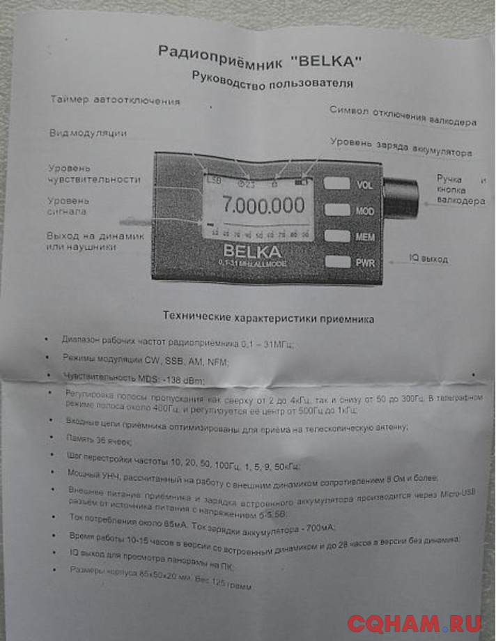 Продам новый приёмник "BELKA", последняя версия - 100кГц...31МГц, без встроенного динамика, с АКБ увеличенной ёмкости. Отправлю Почтой, СДЭК, Озон-доставкой за счет покупателя.